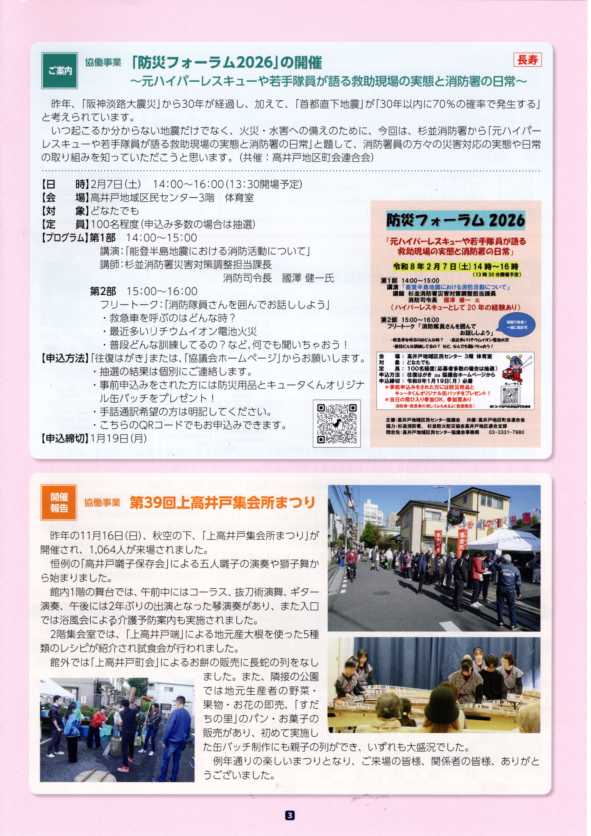 ●印刷物は高井戸地域区民センター1階に置いてあります。