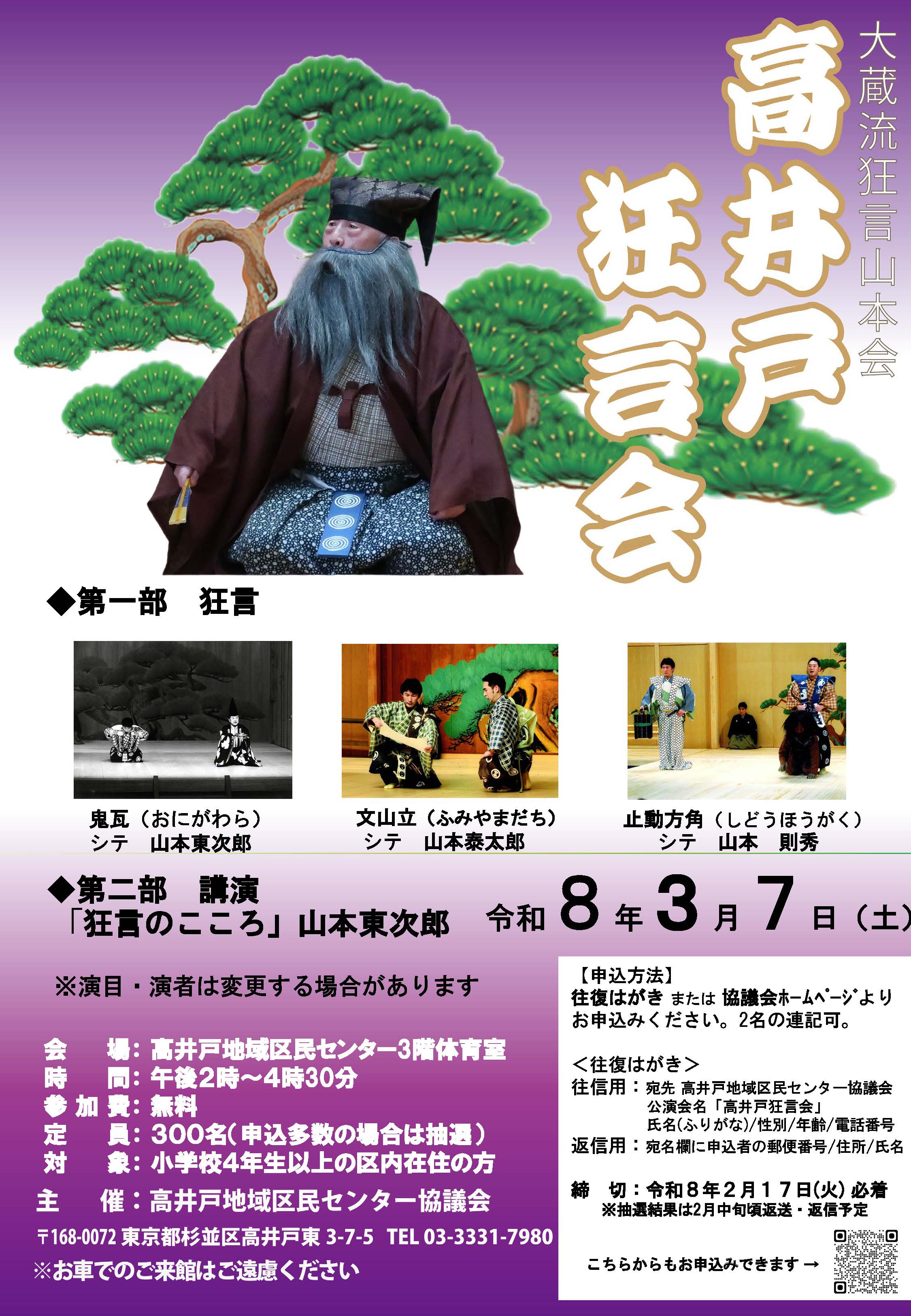 【申込受付中】2026年3月7日(土)「高井戸狂言会」を開催します。