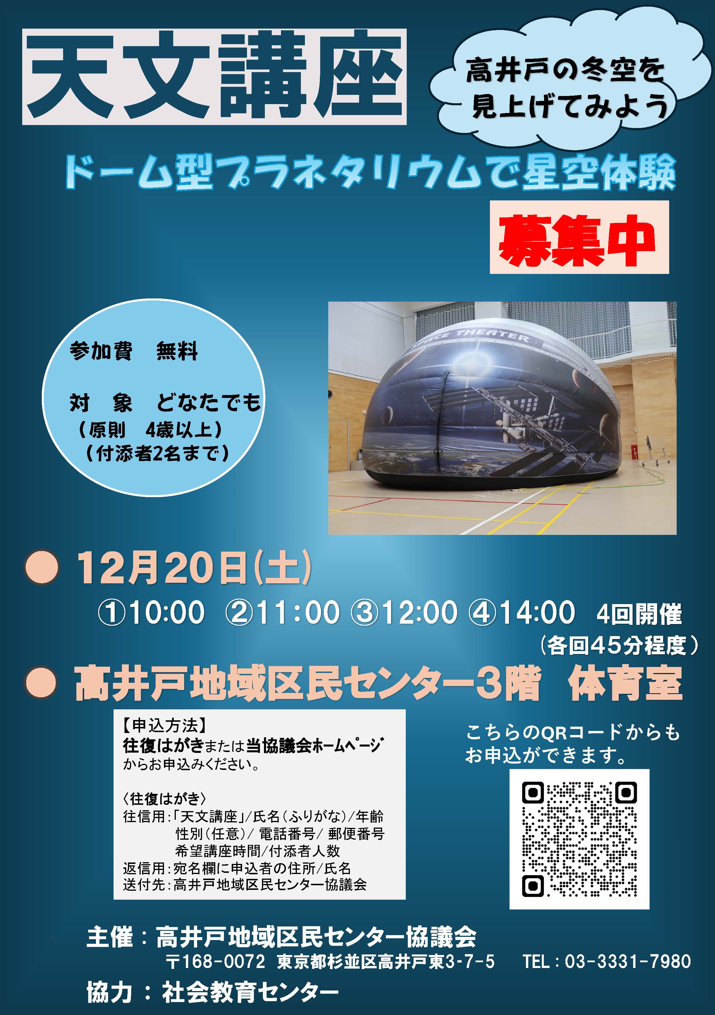 ~ドーム型プラネタリウムで高井戸の星空を見上げてみよう~